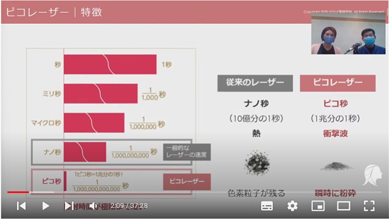 ここでは更に『照射時間が短いとどのような効果があるのか』、また『従来のレーザーと比較してなぜダメージが少ないのか』などメカニズムについて詳しくご説明しております。