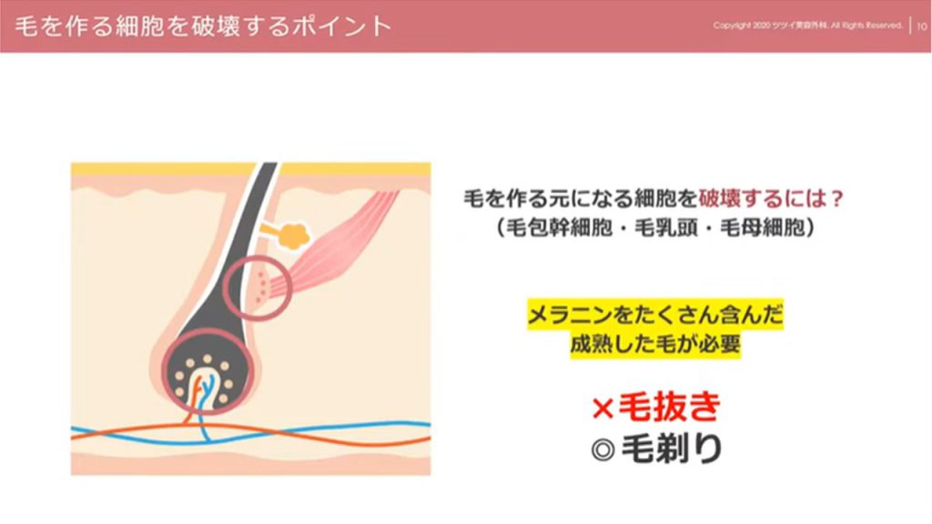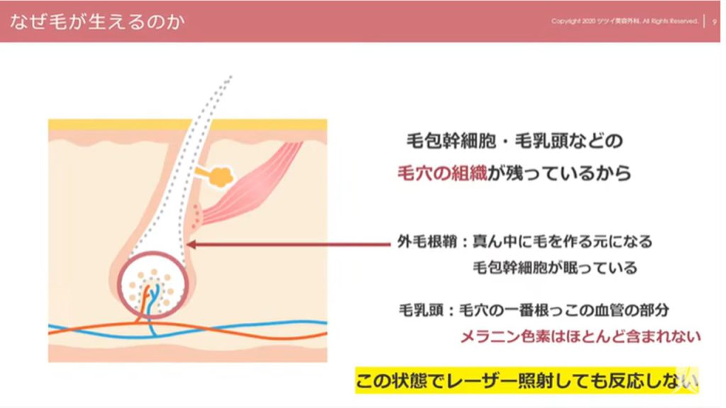 それは毛穴の中に組織がまだ残っている状態だからです。それが再び毛を発生させる元となっていきます。