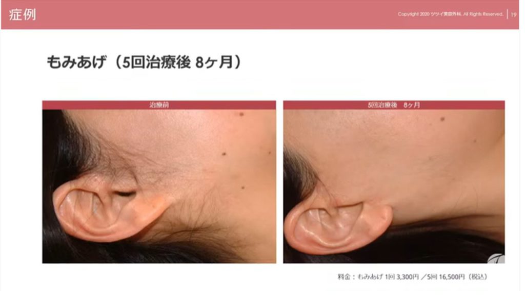 硬毛化の毛は濃くため、レーザーの反応はしやすい状態です。そのためこちらの方は回数を重ねてここまで改善されました。