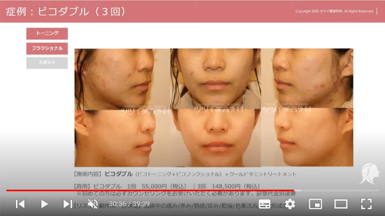 シミ・ニキビ・ニキビ跡などさまざまな肌悩み別に紹介しております。更に症例を見られたい方はぜひ動画をご覧ください。
