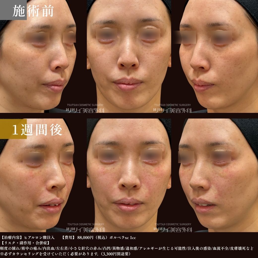 このケースでは、ボルベラという柔らかいヒアルロン酸を1本使用しました。