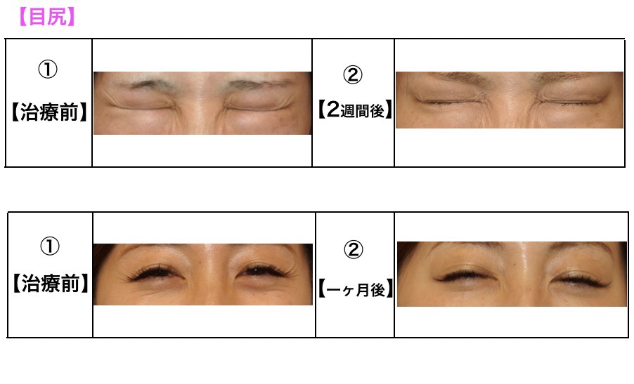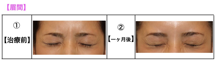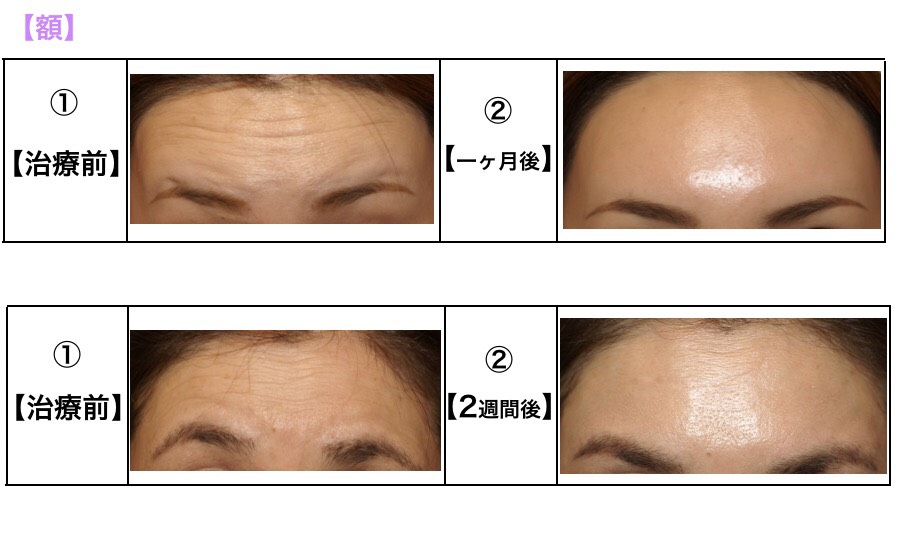 額と目尻のボトックス注入後、1ヶ月後の経過写真です。