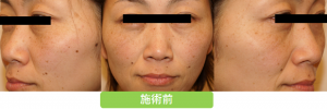 治療前は、頬を中心にソバカス及び、シミが散在していました。