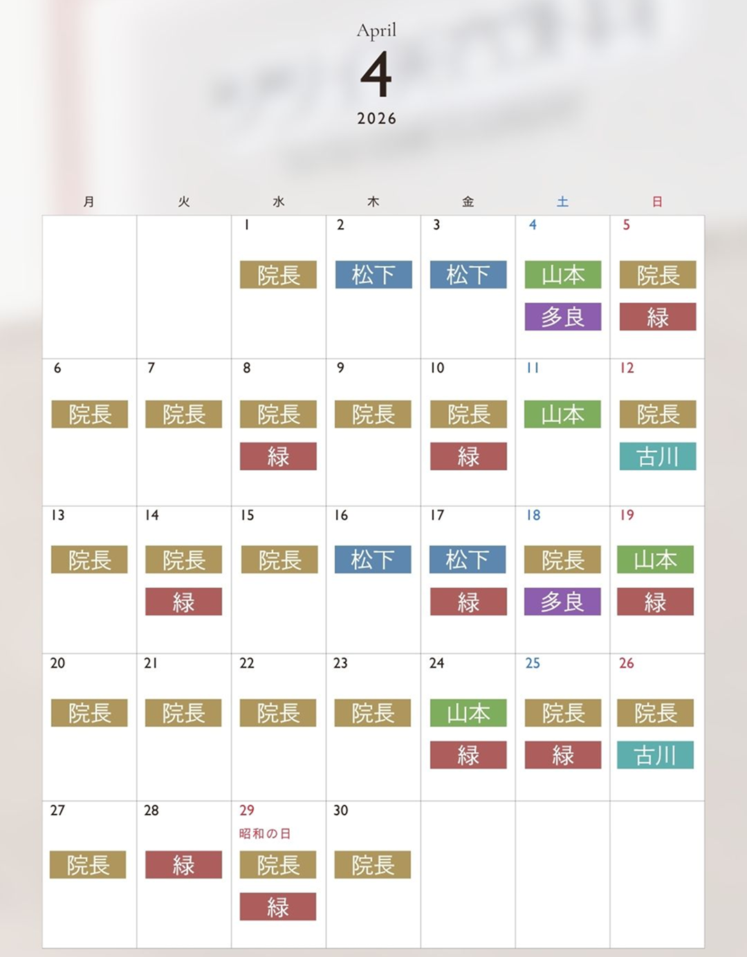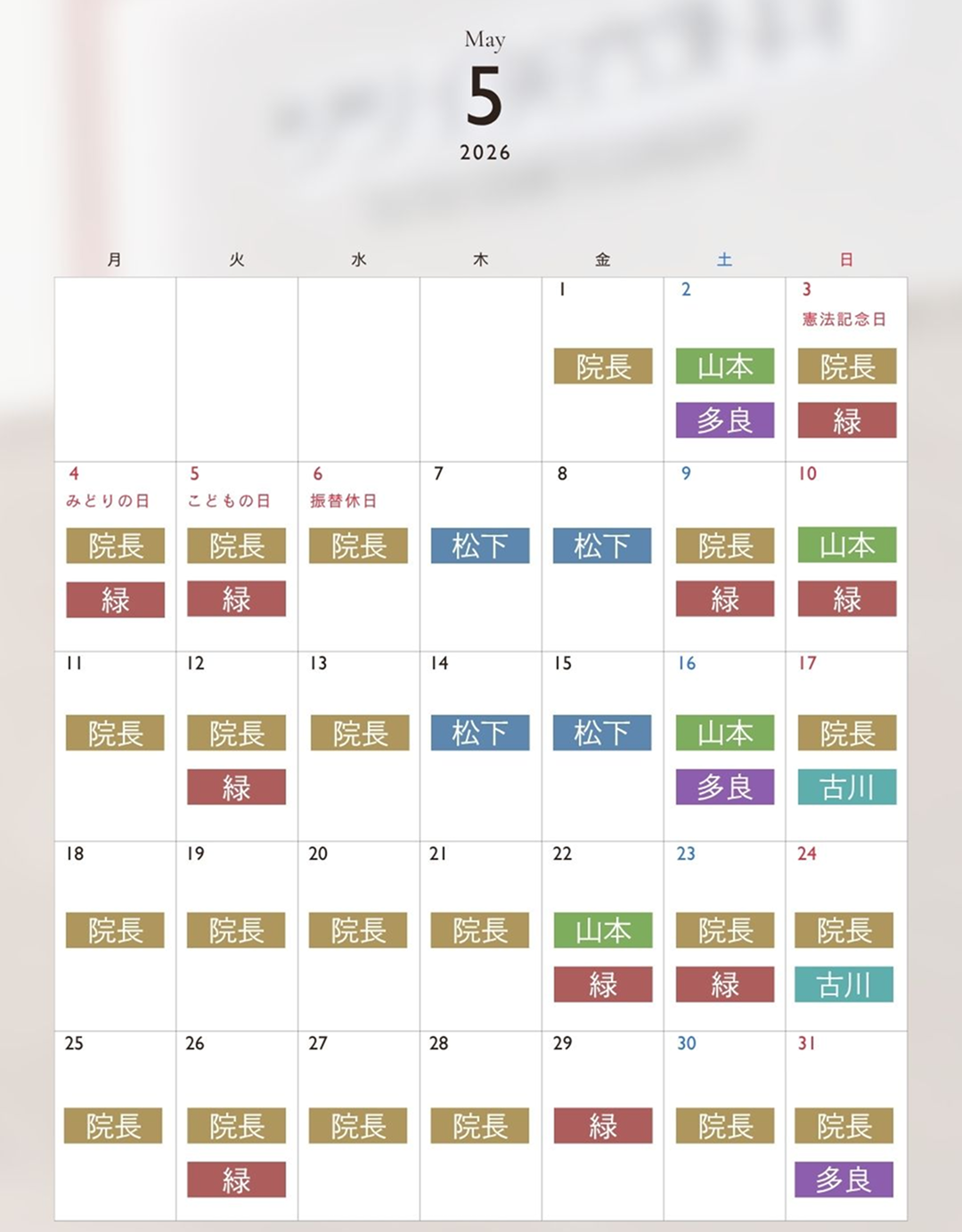 ※Drの状況に応じて急な変更が発生する場合がございます。予めご了承ください。