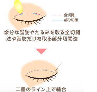 埋没法では難しい「脂肪が多い」「皮膚が厚い」「腫れぼったい」方に適した方法です。