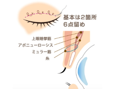 腫れにくく、ダウンタイムが短い メスを使用しない 傷跡がほとんど残らない 幅を変えたり、短期間で糸を抜けば元の状態に戻すことも可能