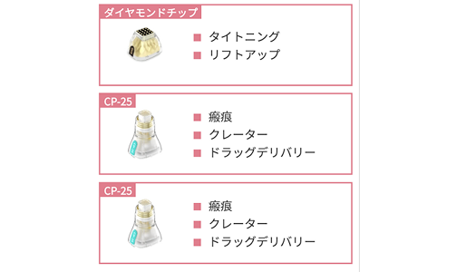 お悩みに対し、治療目的に特化したチップを使用することで治療効果が高まります。またチップは使い捨てのため衛生的です。
