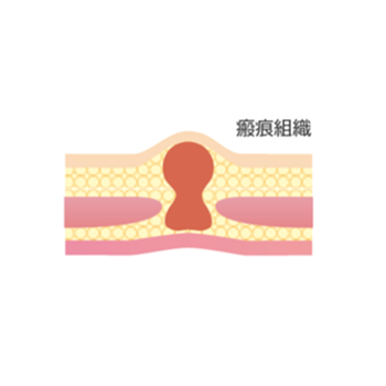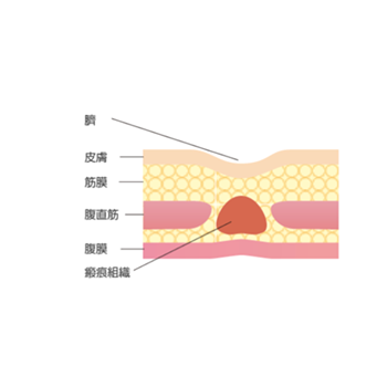 瘢痕結合により組織皮膚と臍輪が癒着し、 胸が形成されている。