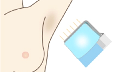 高周波の熱エネルギーが、汗や臭いの元である汗腺(エクリン汗腺・アポクリン汗腺)を熱凝固させ、破壊することでその働きを抑え汗や臭いを減少させる。
