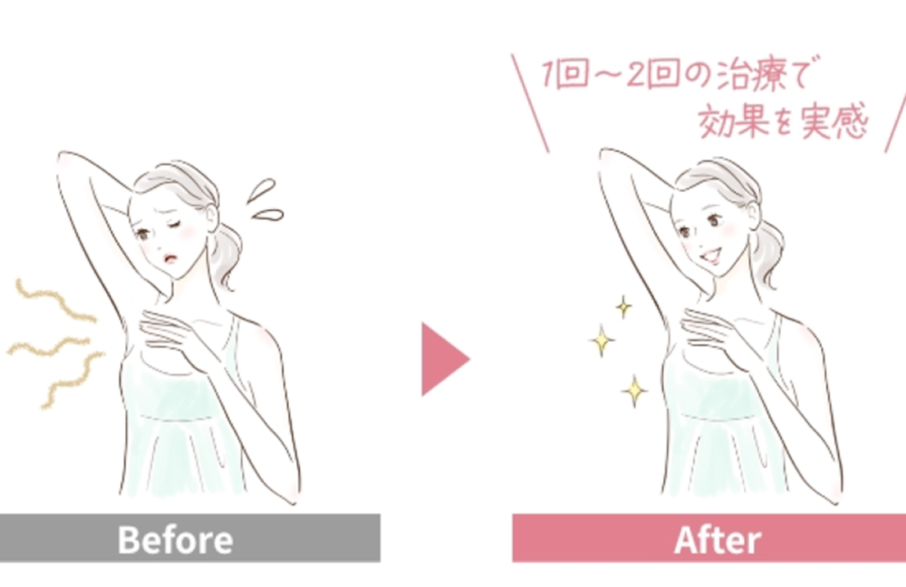 医師が肉眼で確認しながら丁寧に取り除いていく切除手術のように直視下で行うものではないため、100%の汗腺を破壊は期待できませんが、平均的に1回~2回の少ない回数で治療の効果を実感することができます。