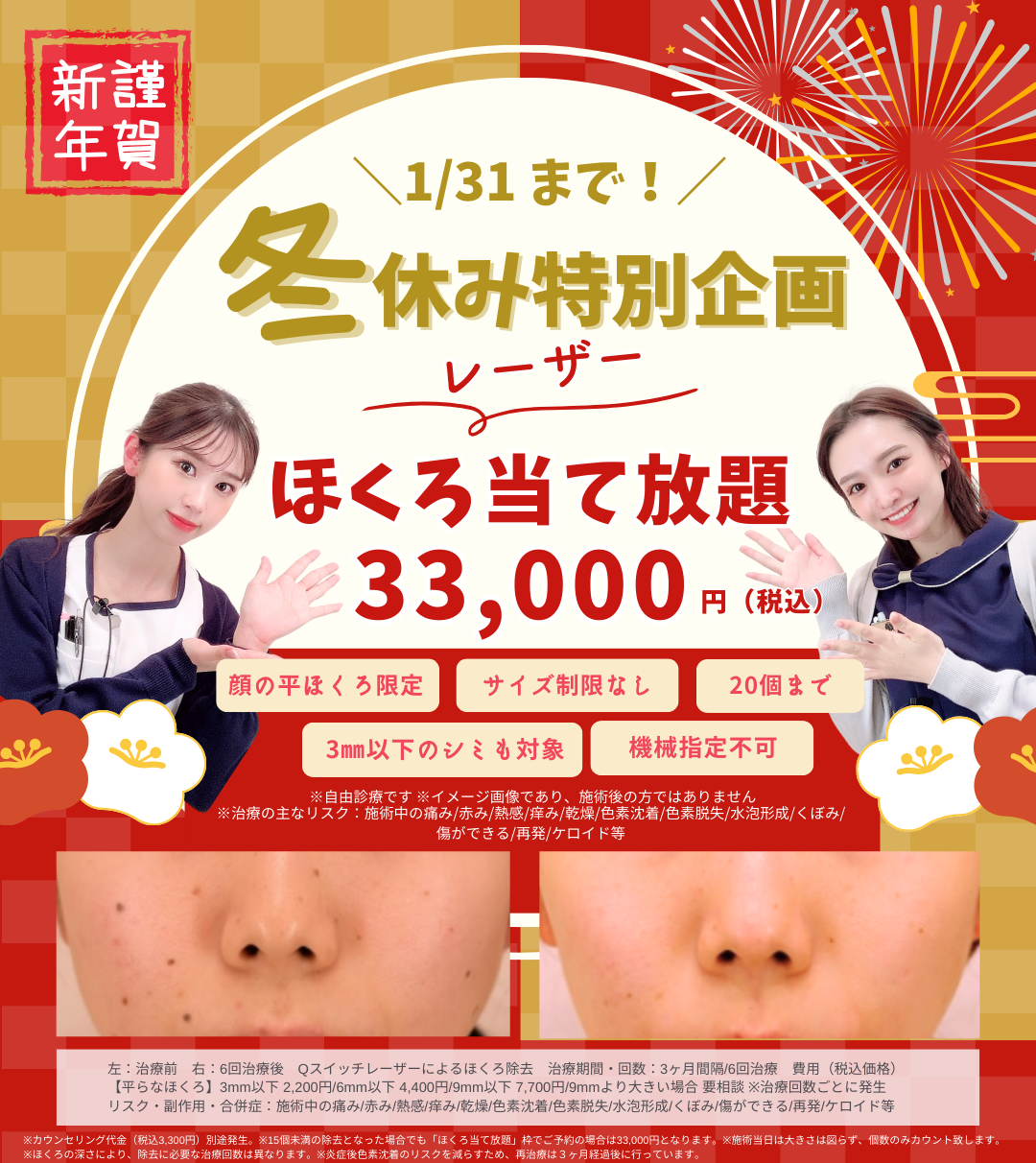 大阪・心斎橋ツツイ美容外科のWEBサイトをご覧くださり、誠にありがとうございます。 大変ご好評いただいている「ほくろ除去 レーザー当て放題」企画。 冬休み特別企画として、2…