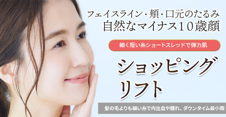 ショッピングリフトとは、髪の毛よりも細い糸を数十本単位で皮膚の真皮と脂肪層の間に挿入し、コラーゲン生成を促進させる治療です。