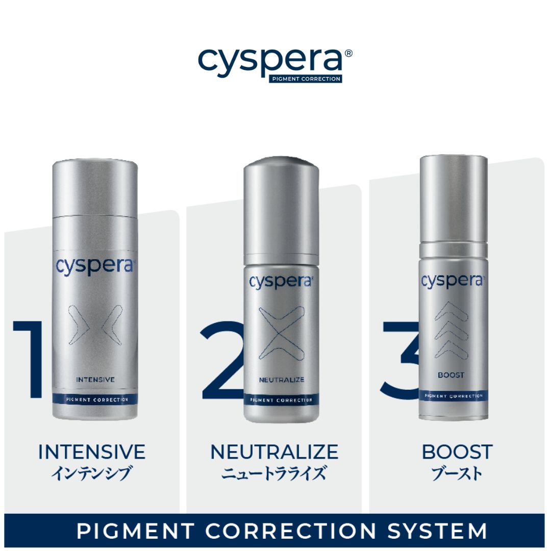 美白成分システアミンの配合量を7%へ増量、アイソバイオニックアミド、AHAが配合され、バージョンアップしたシスペラ インテンシブシステム。更に3つのステップで完結するスキンケアで、より多くの作用で幅広くメラニン形成経路やメラニンに働きかけ、シスペラクリーム以上の効果が期待できます。