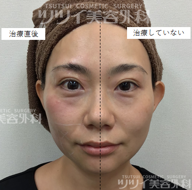上記の写真をご覧ください。こちら右半分(写真では左半分)治療した直後の写真です。