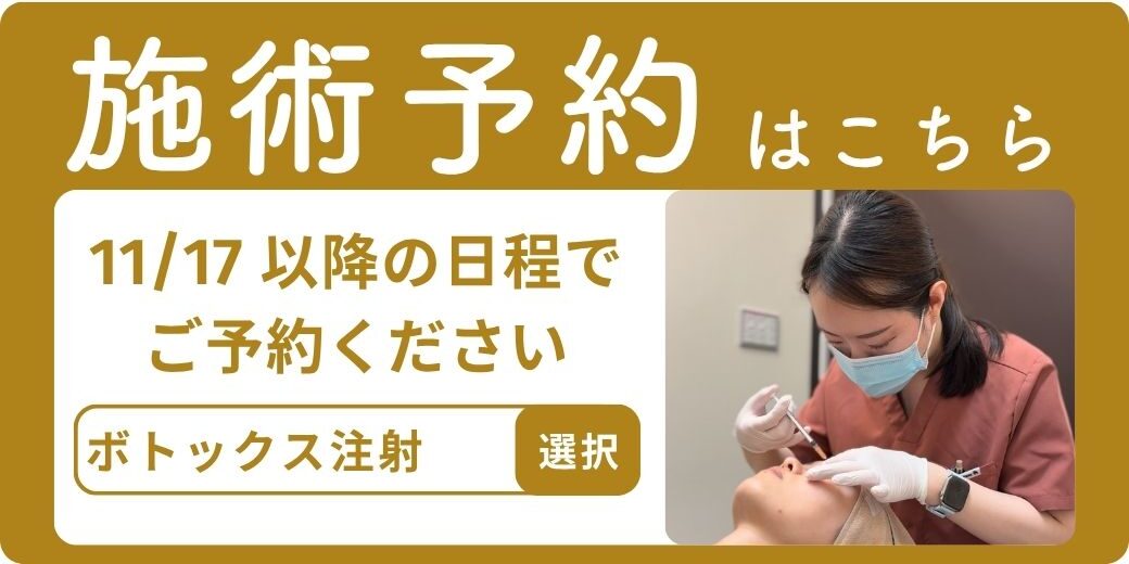 「ボトックス注射 アラガン社ボトックスビスタ(2025年11月17日~)」もしくは、「ボトックス注射 コアトックス(2025年11月17日~)」をお選びください。