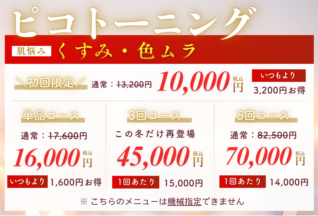※季節限定のWピコは、レーザー治療のみを組み合わせたプランです(クールビタミントリートメントは含まれません)
