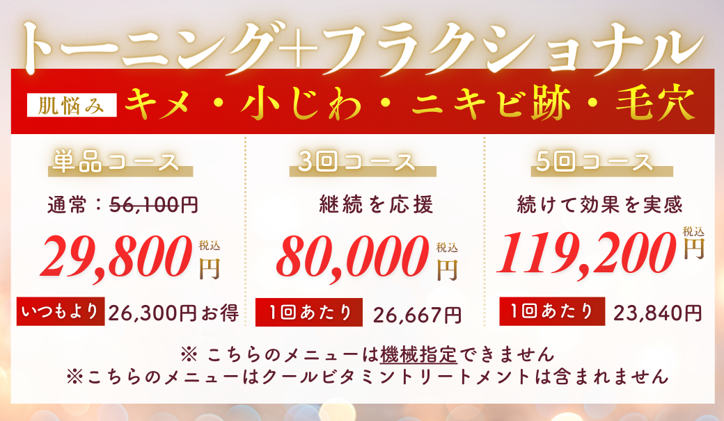 ※通常価格=トーニング17,600円+フラクショナル38,500円の合計